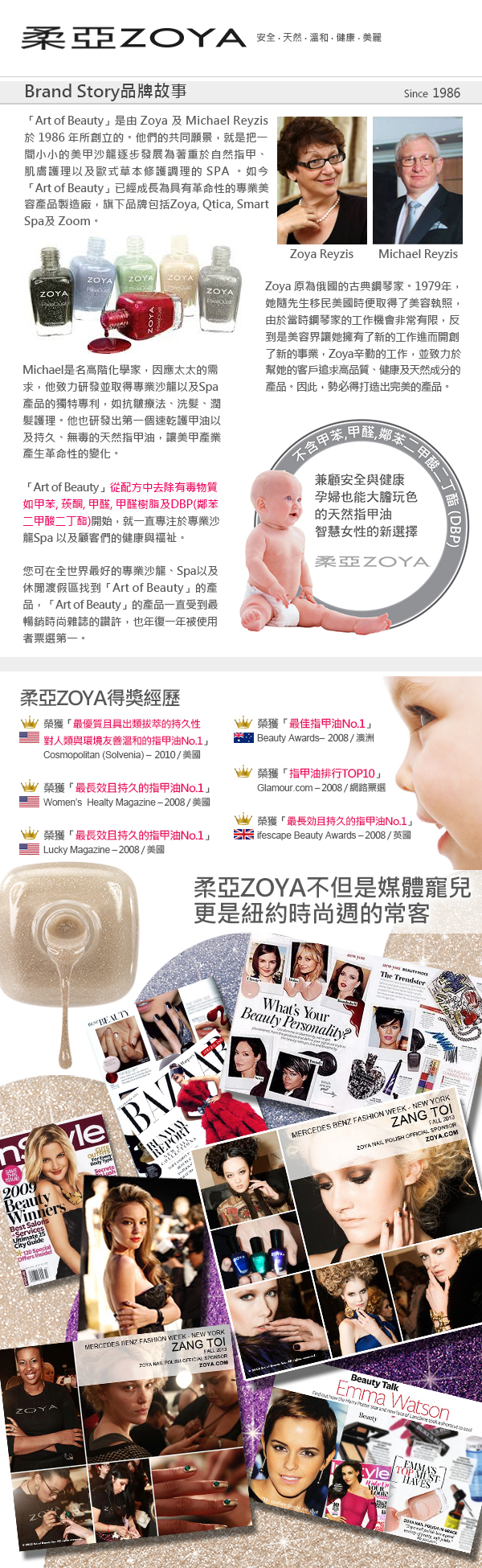 美國專業指甲油品牌-ZOYAZoya Reyzis創辦人於1984年起經營美容沙龍,